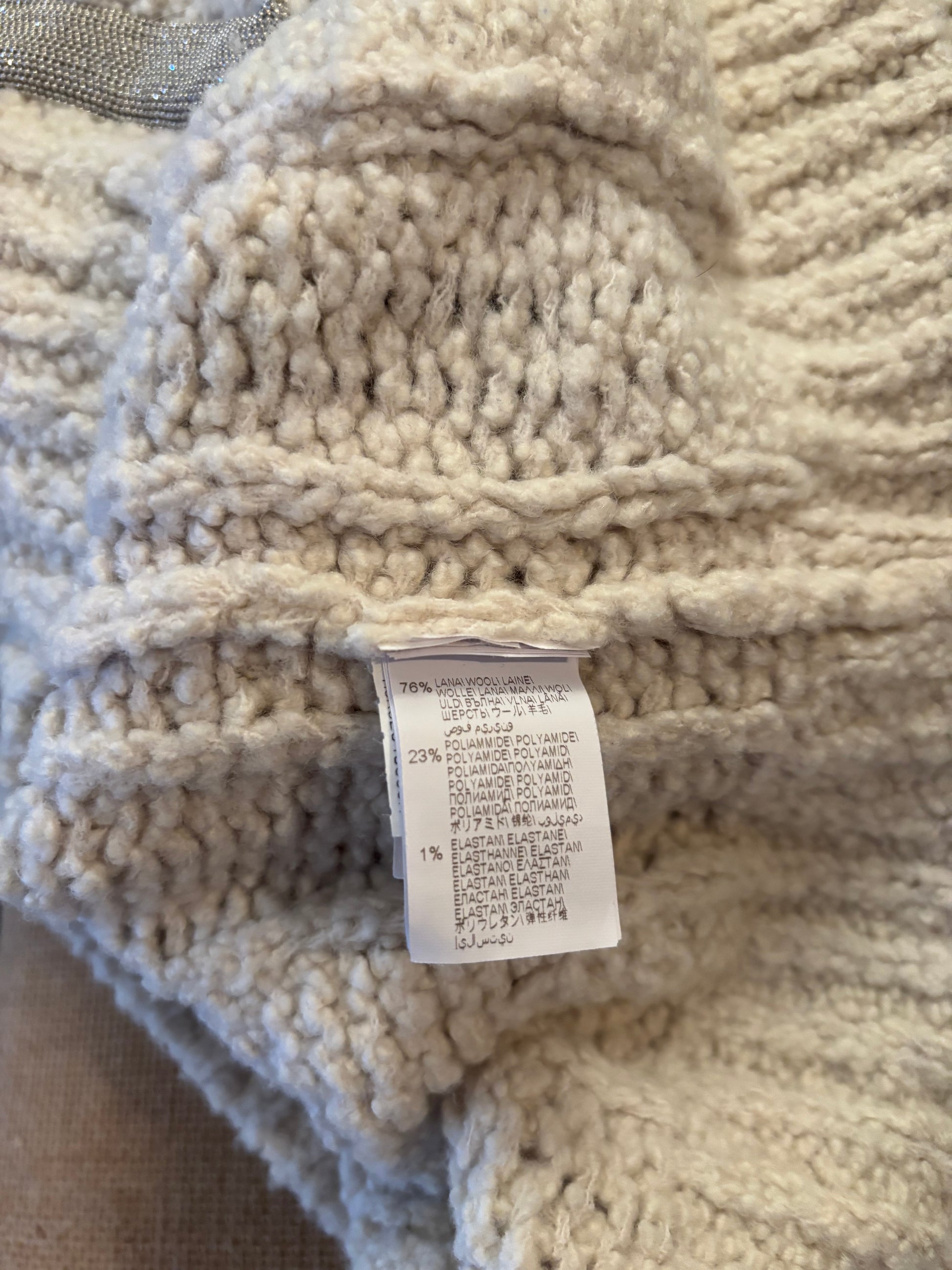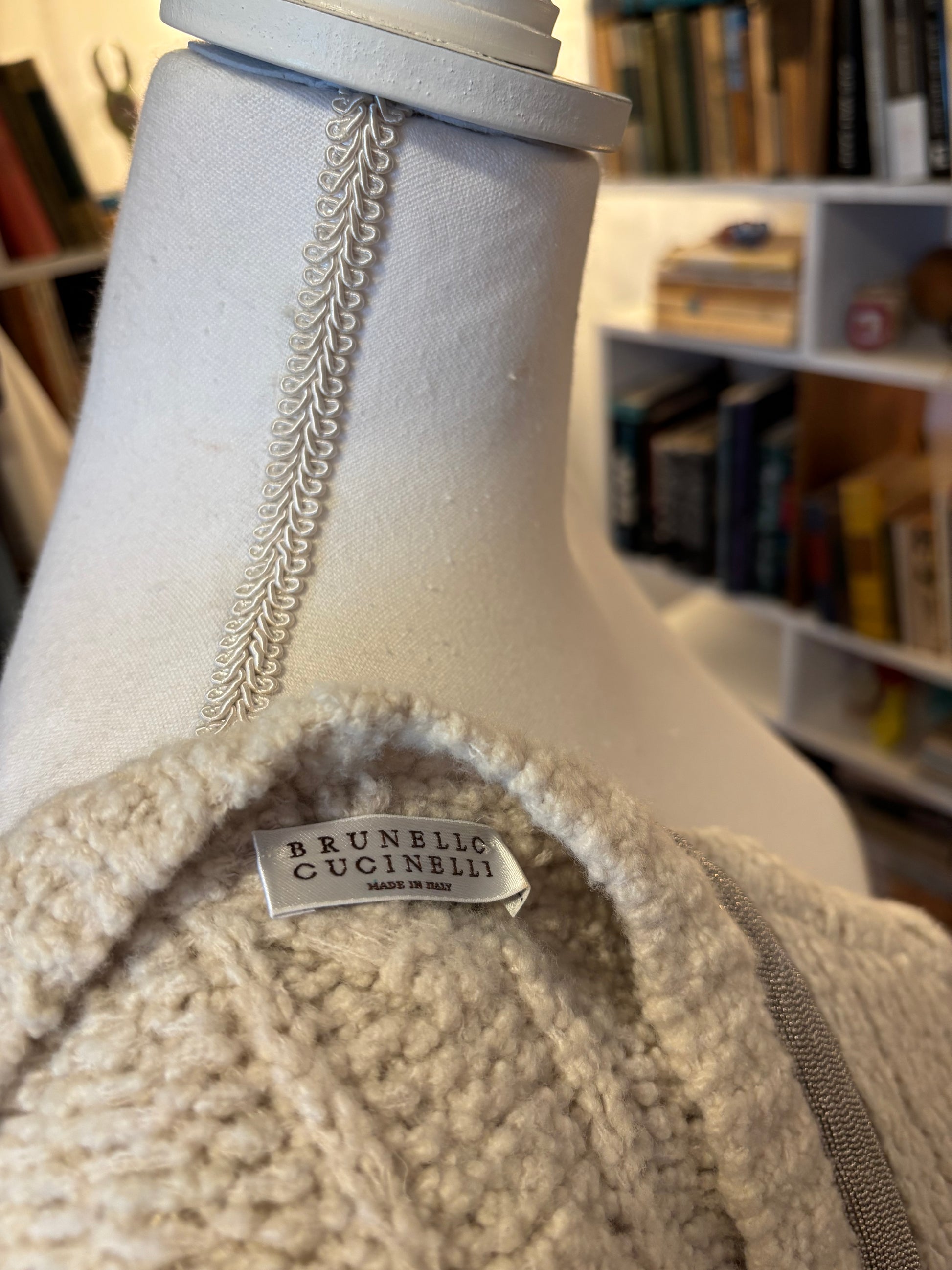 Brunello Cucinelli Monili Trim Cable Knit Cardigan Vanilla
