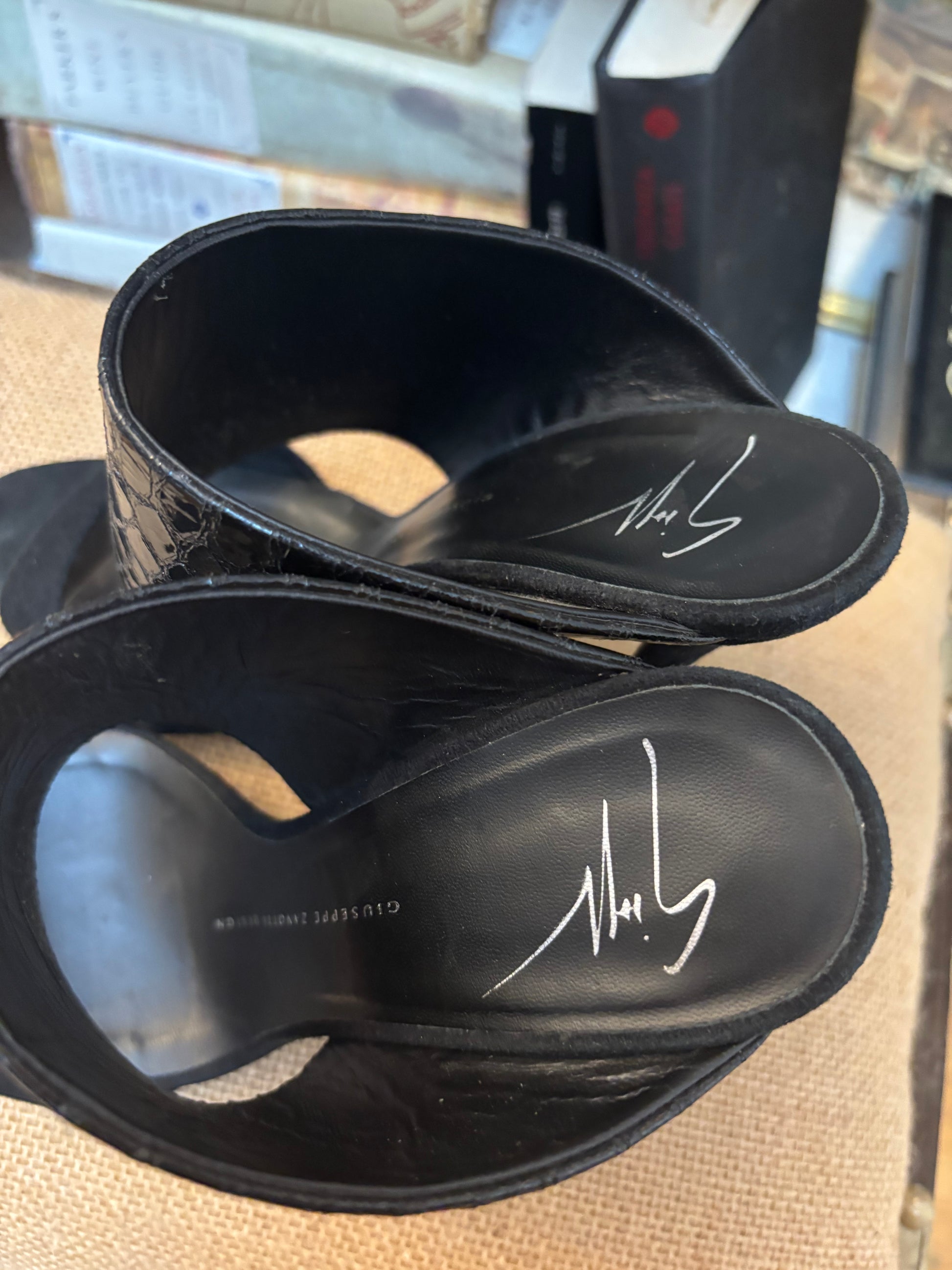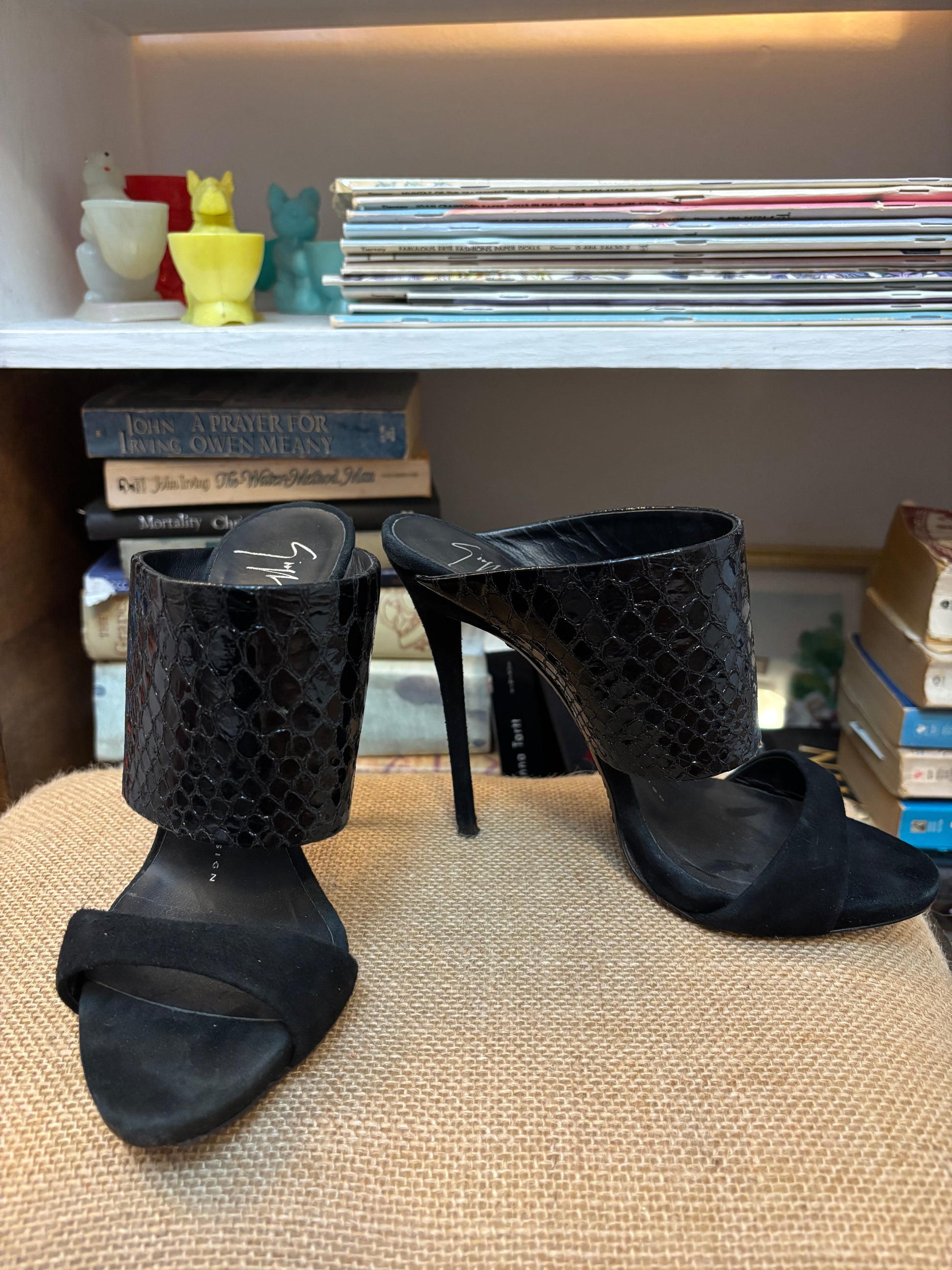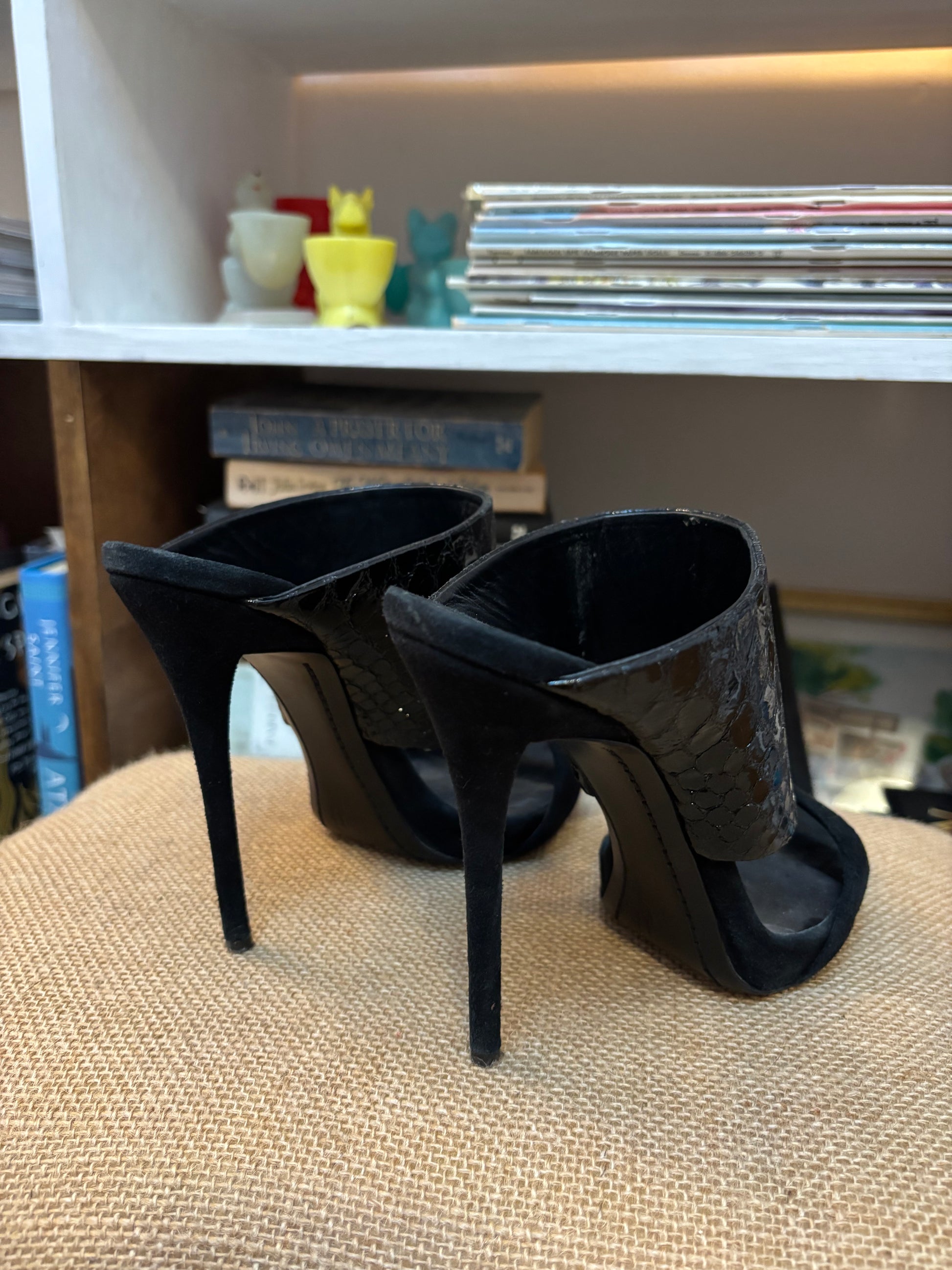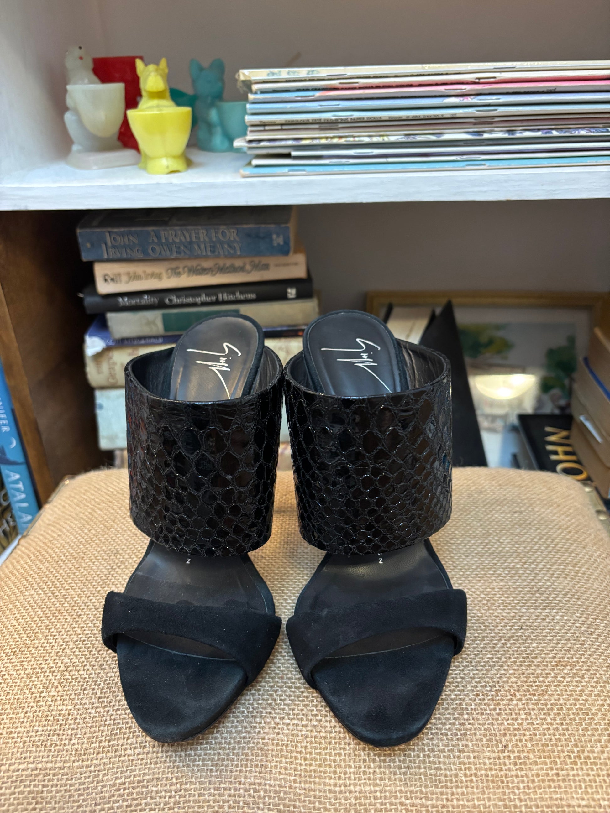 Giuseppe Zanotti Suede and Snakeskin embossed leather open toed mules