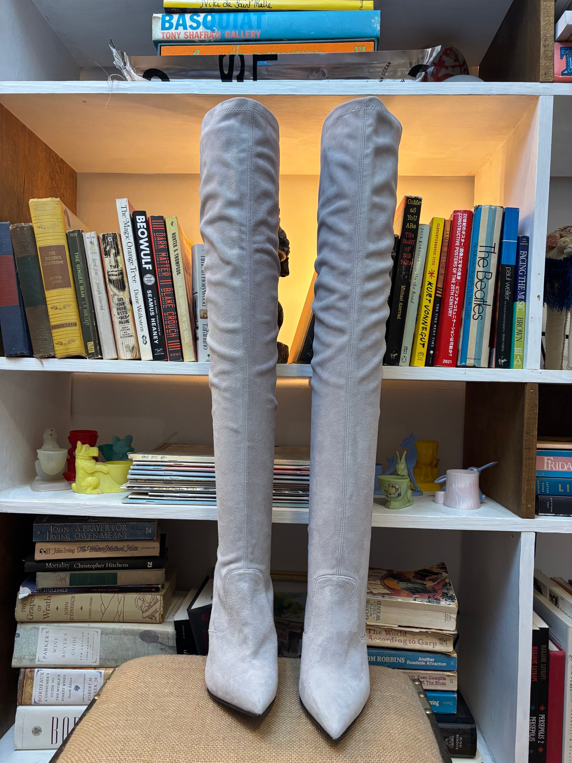 Pale Grey Suede Over The Knee Boots